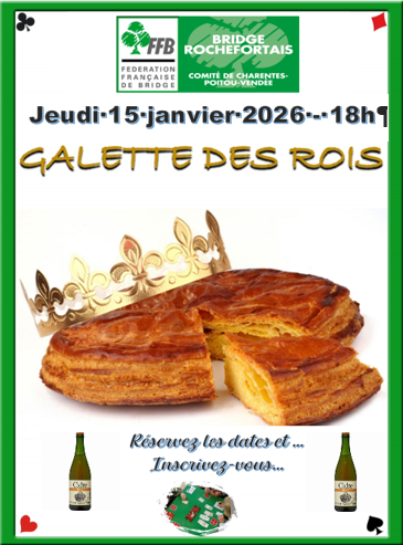 La traditionnelle galette des Rois accompagnée de cidre sera offerte jeudi 15 janvier après le tournoi simultané du Roy René.